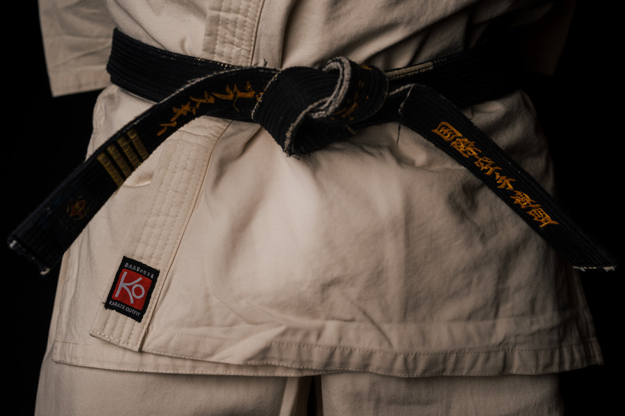 In 1920, master Funakoshi demonstrated karate techniques at Kōdōkan, the main school of judo. Inspired by the ideas and organisation of this discipline, he introduced the system of ranks and belts and adapted the practice uniform from judo to karate. Whereas judogi was perfect for grips, throws and tugs, it was not entirely suitable for practicing karate – a dynamic discipline based on kicks and punches. The jacket was too thick and heavy, limiting the rapidity and precision of movement. As time passed and techniques developed, further adjustments would become necessary. Funakoshi’s son Gigō introduced high dynamic kicks into the sport. For this, pants had to be loose, so as not to restrict the legs.